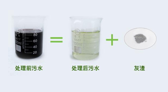 公司研發的工業污水處理系統,把污水一步到位的處理到可達標排放的中水和不含任何污染物的灰渣。